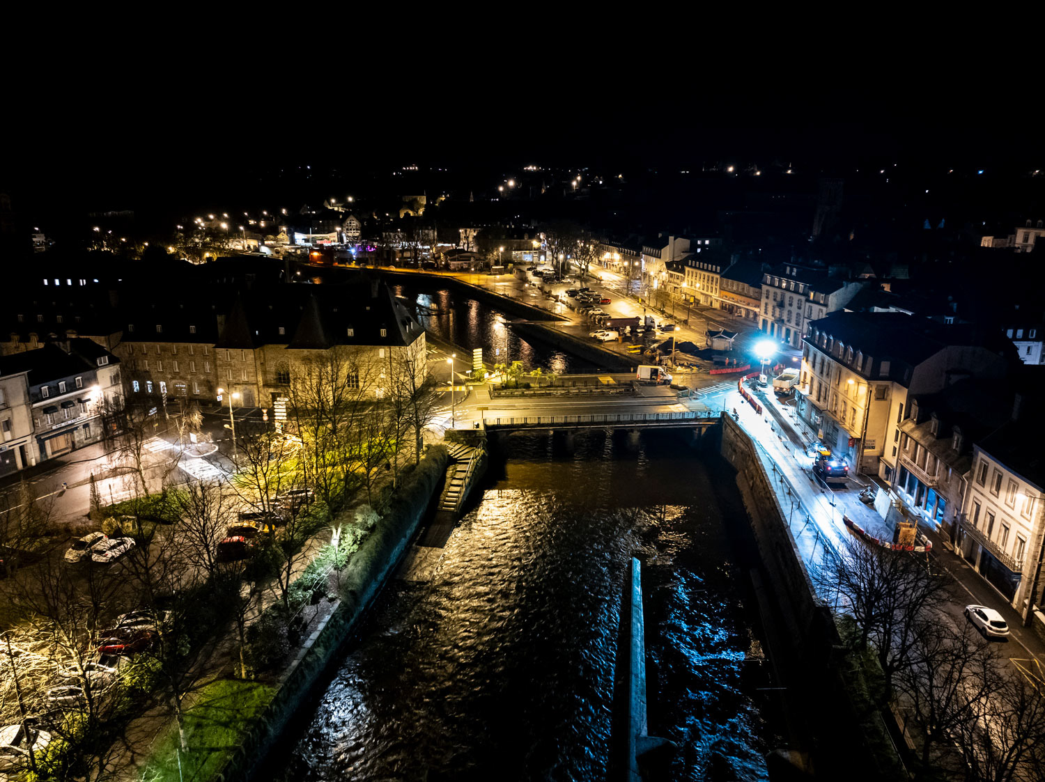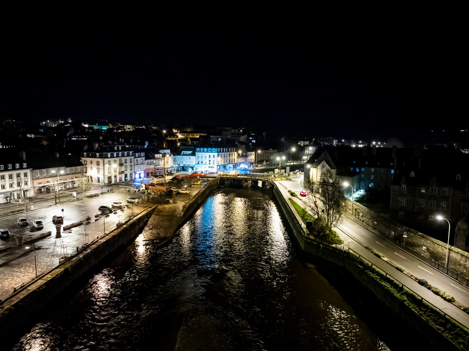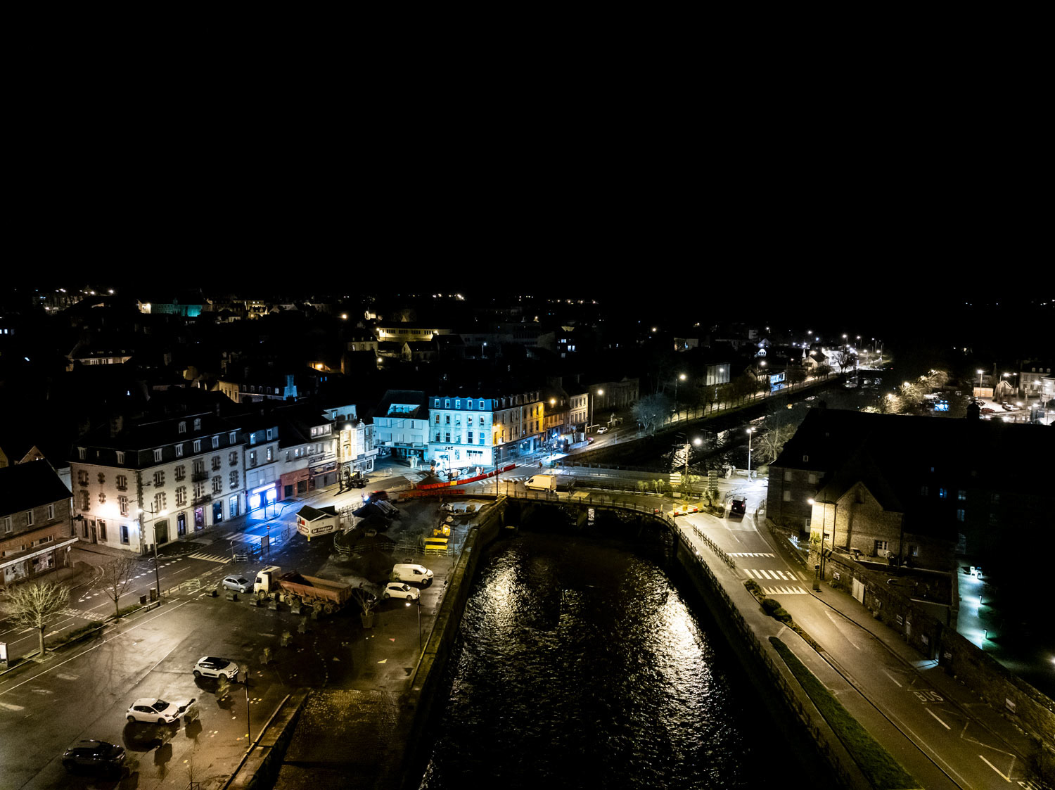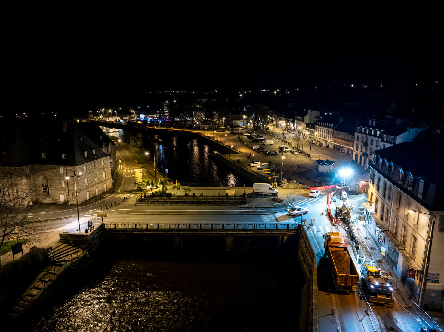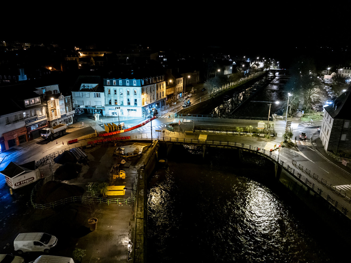 Reportage photo par drone, dans le centre ville de Lannion, pour l'entreprise SLC (Société Lannionnaise de Canalisation)