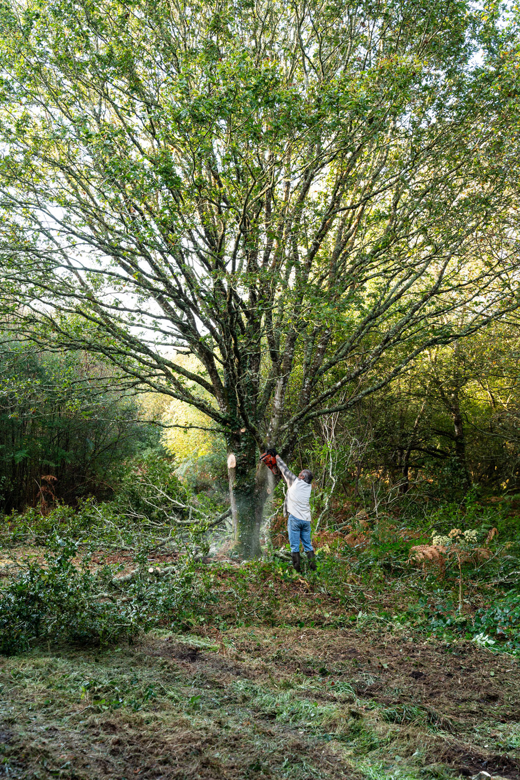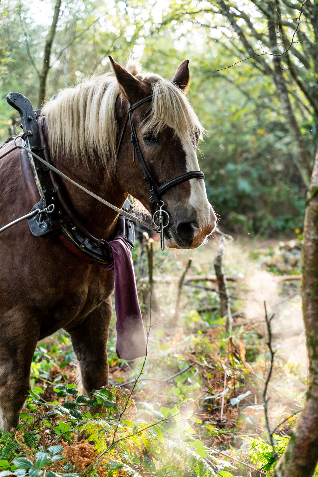 J'ai cette fois suivi le nettoyage d'une lande, afin de reconstituer un milieu naturel. Je partage ici, sur cette image, l'intervention d'un débardeur à cheval.