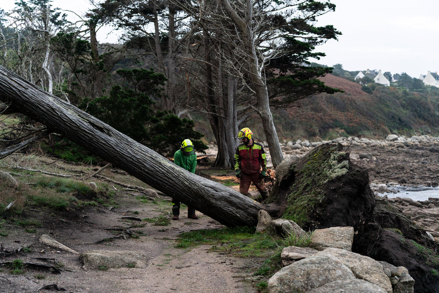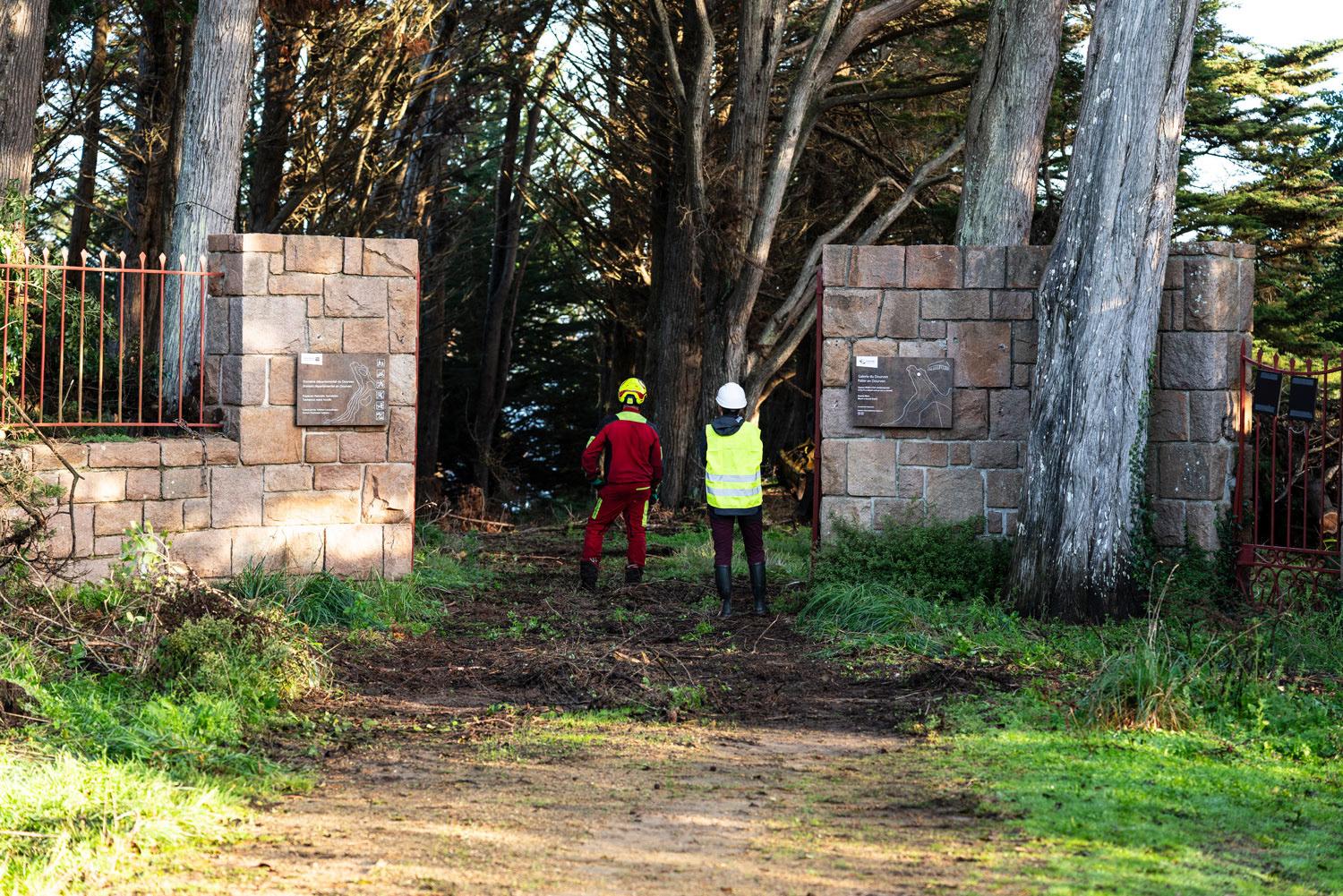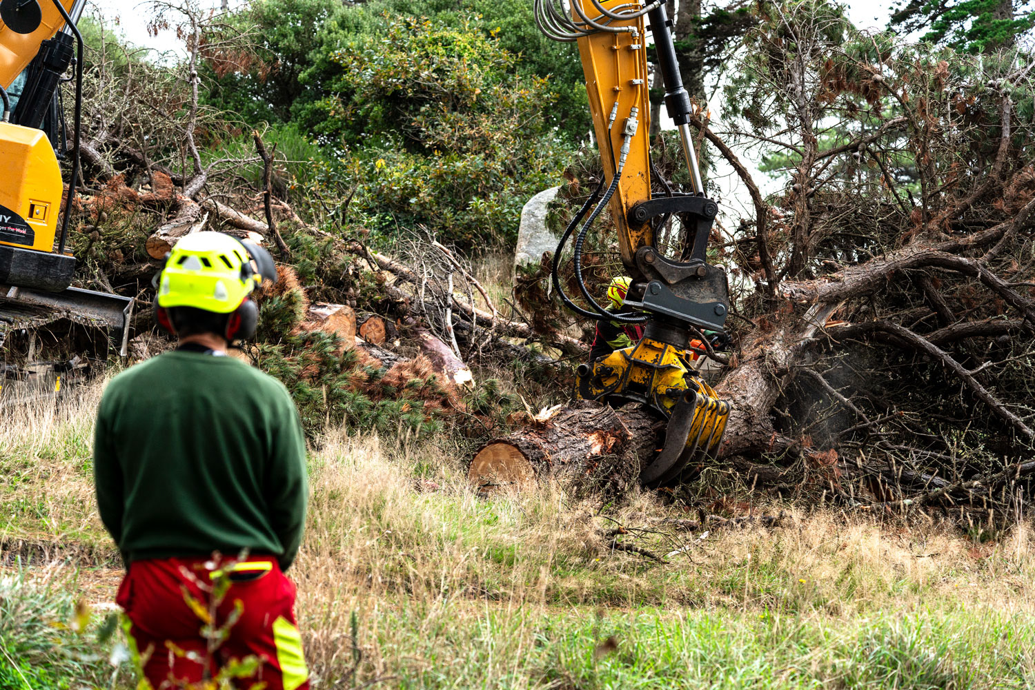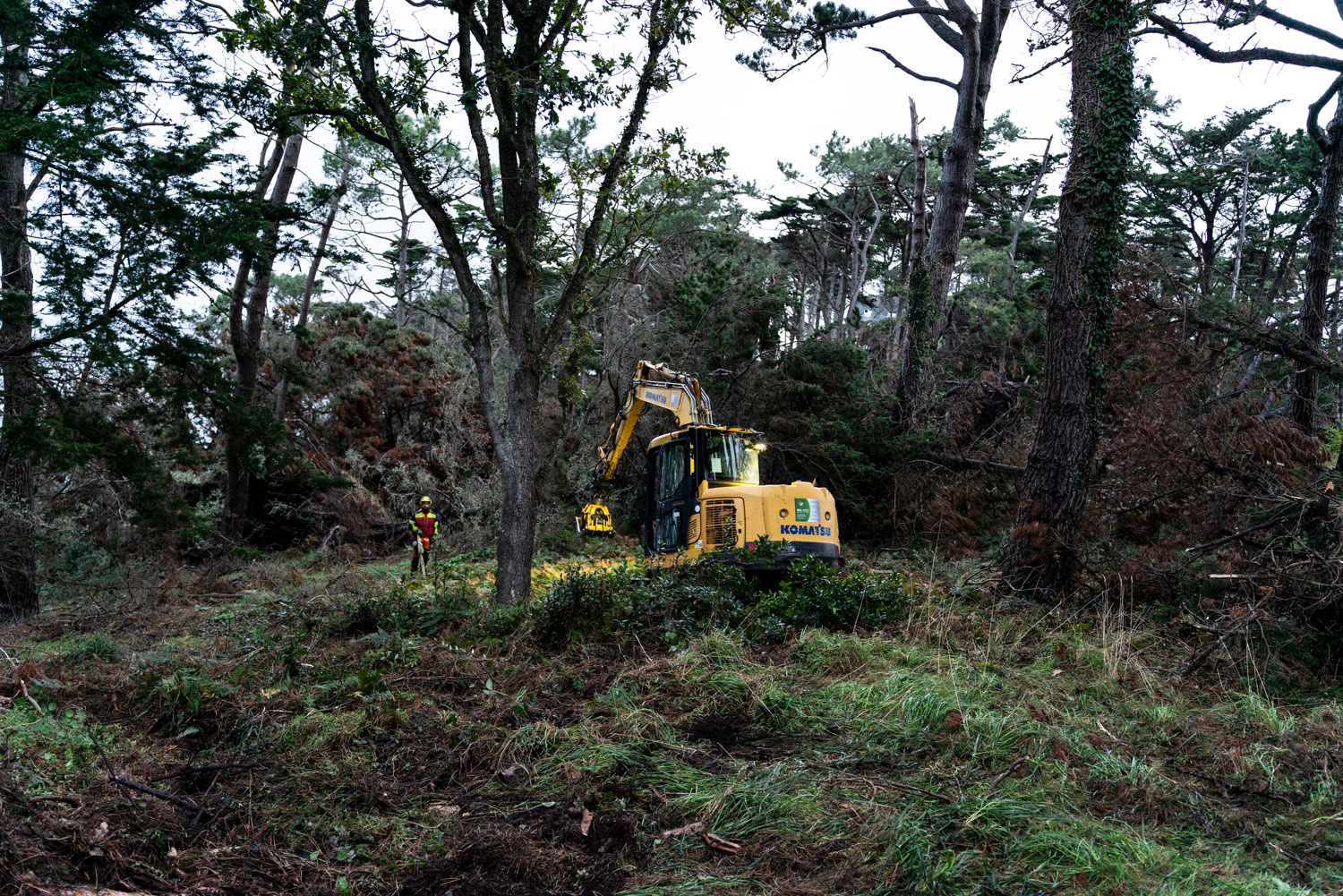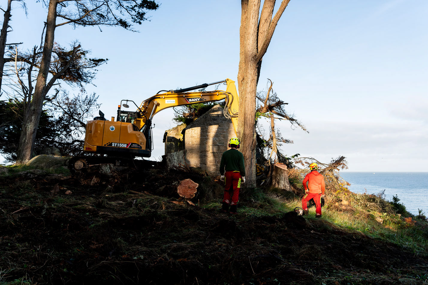Chantier de nettoyage, de restauration et d'aménagement de la Pointe du Dourven, après le passage de la tempête Ciaran
