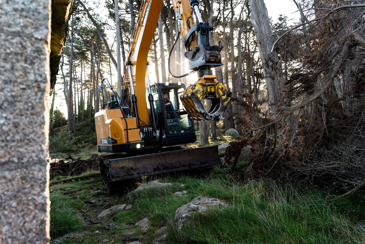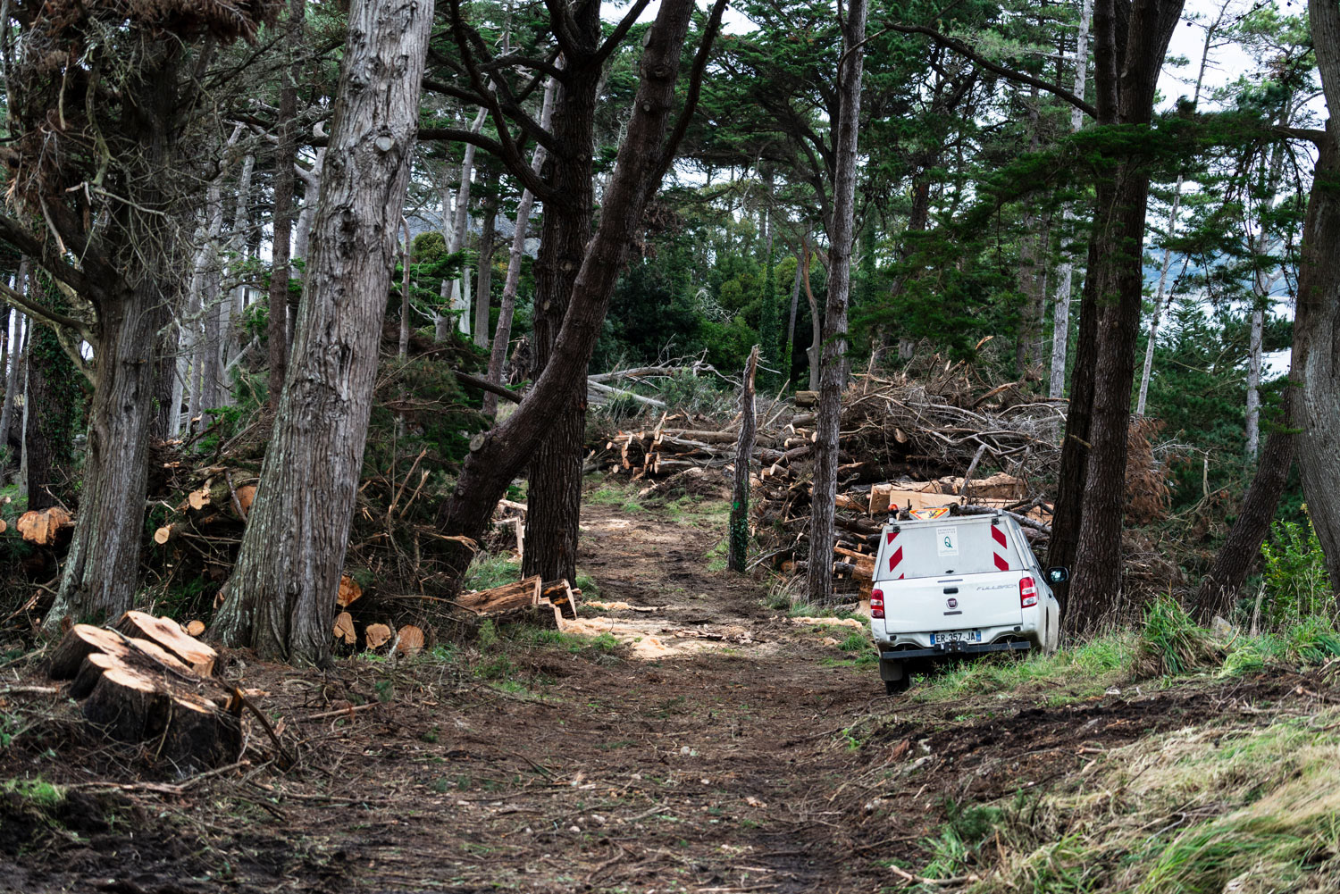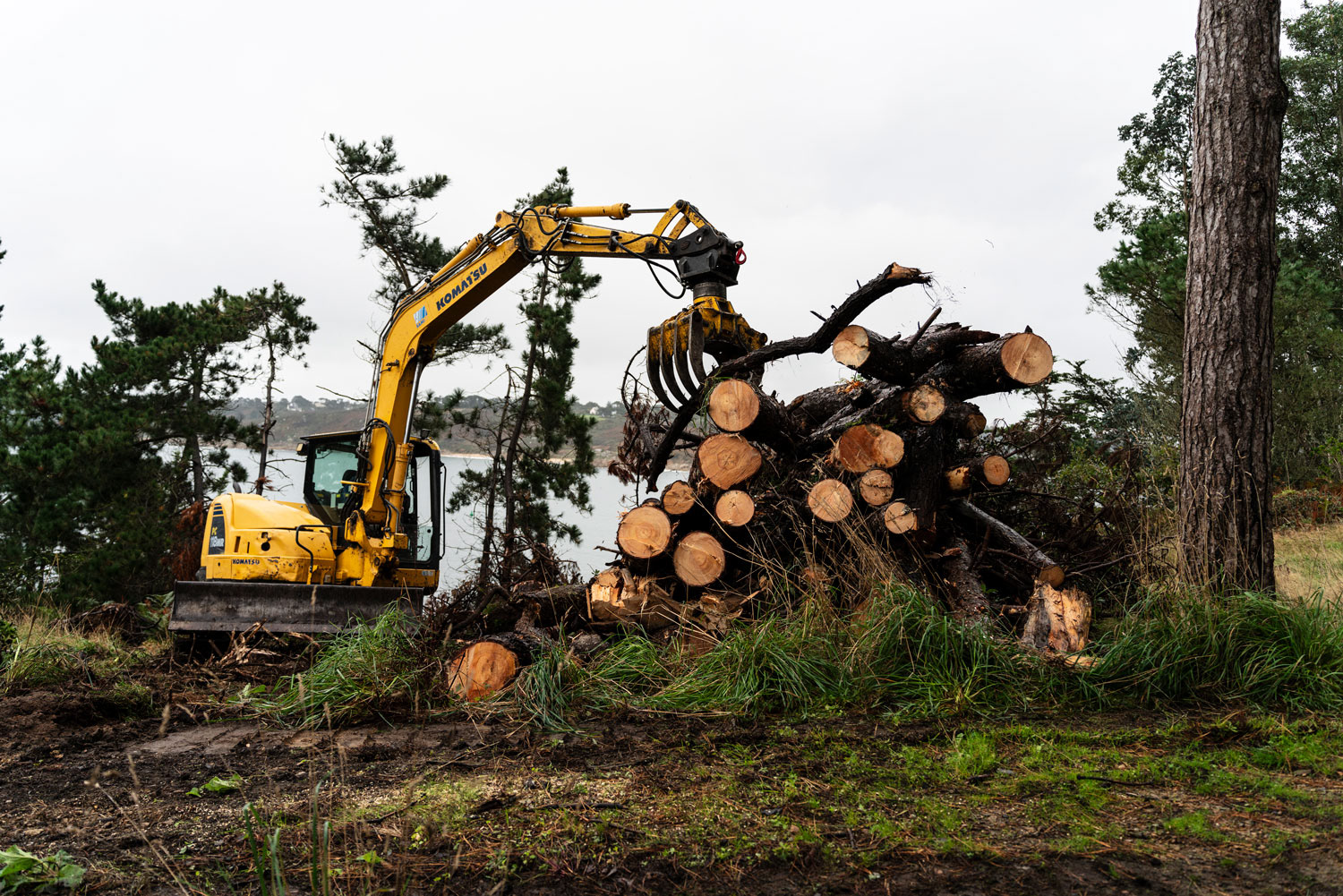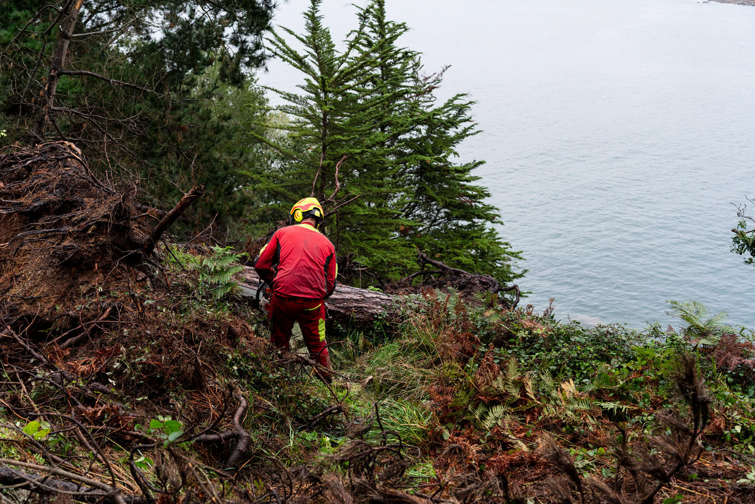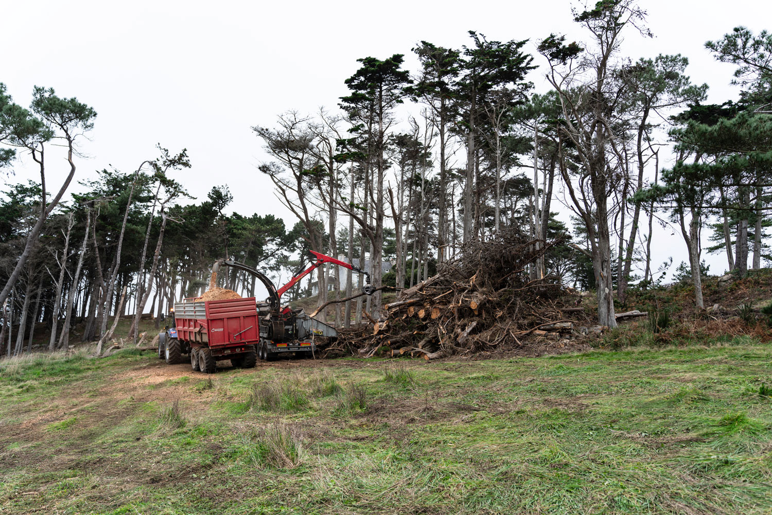 Chantier de nettoyage, de restauration et d'aménagement de la Pointe du Dourven, après le passage de la tempête Ciaran