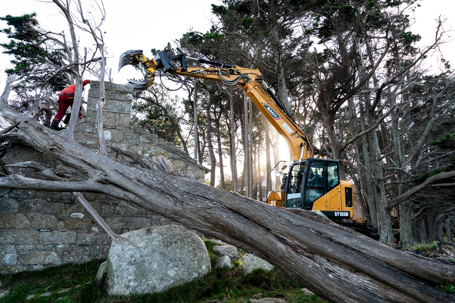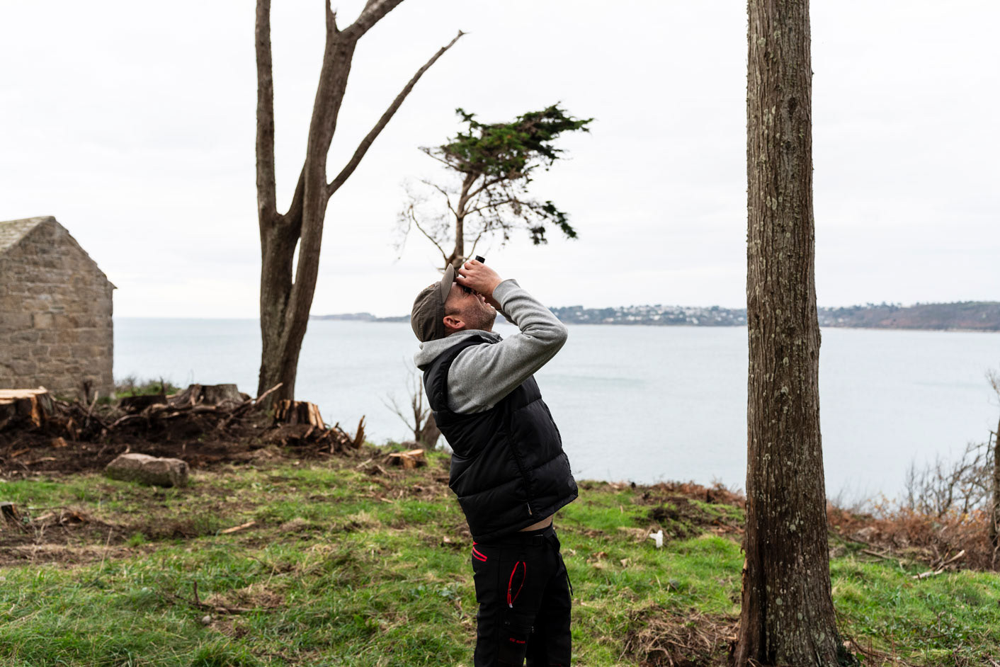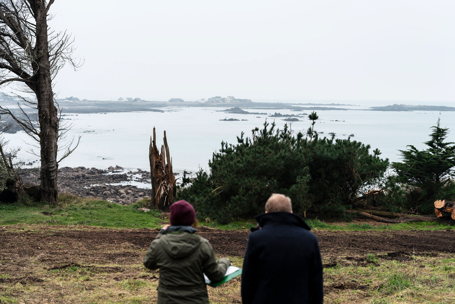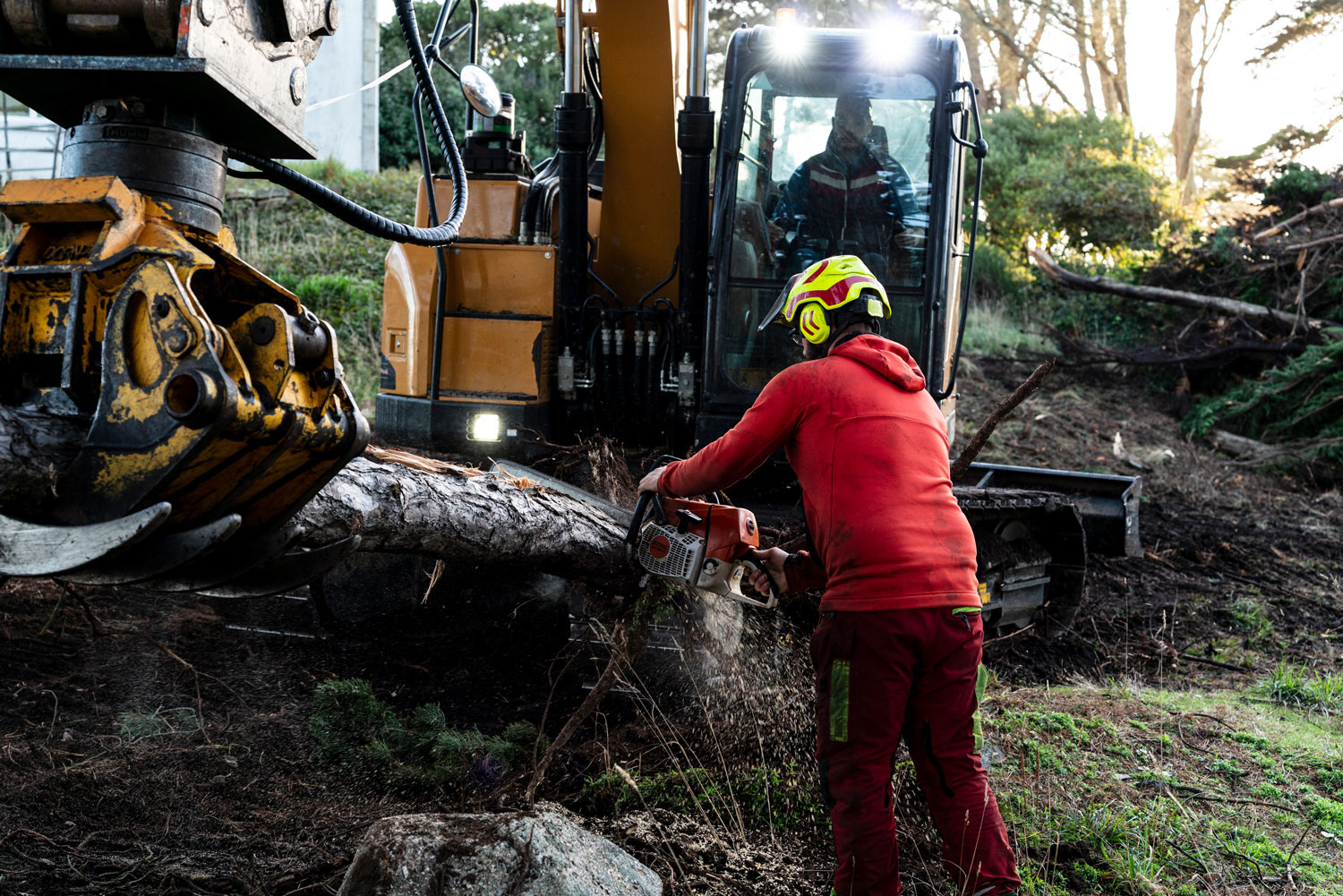 Chantier de nettoyage, de restauration et d'aménagement de la Pointe du Dourven, après le passage de la tempête Ciaran