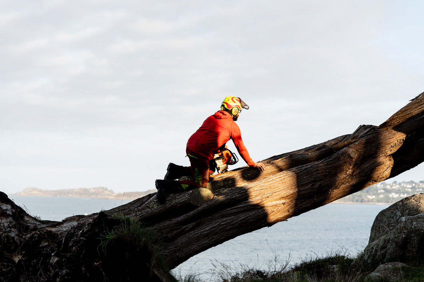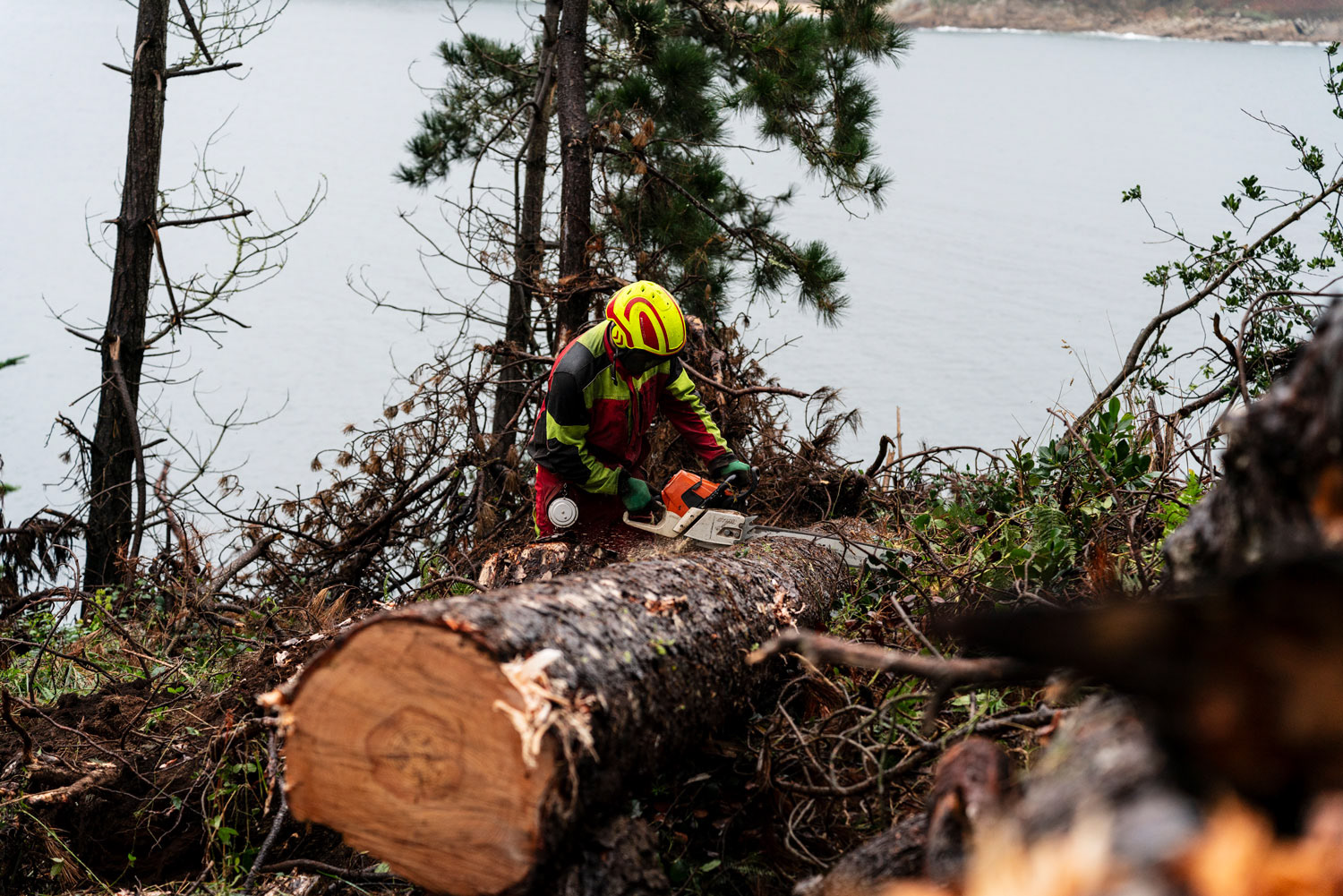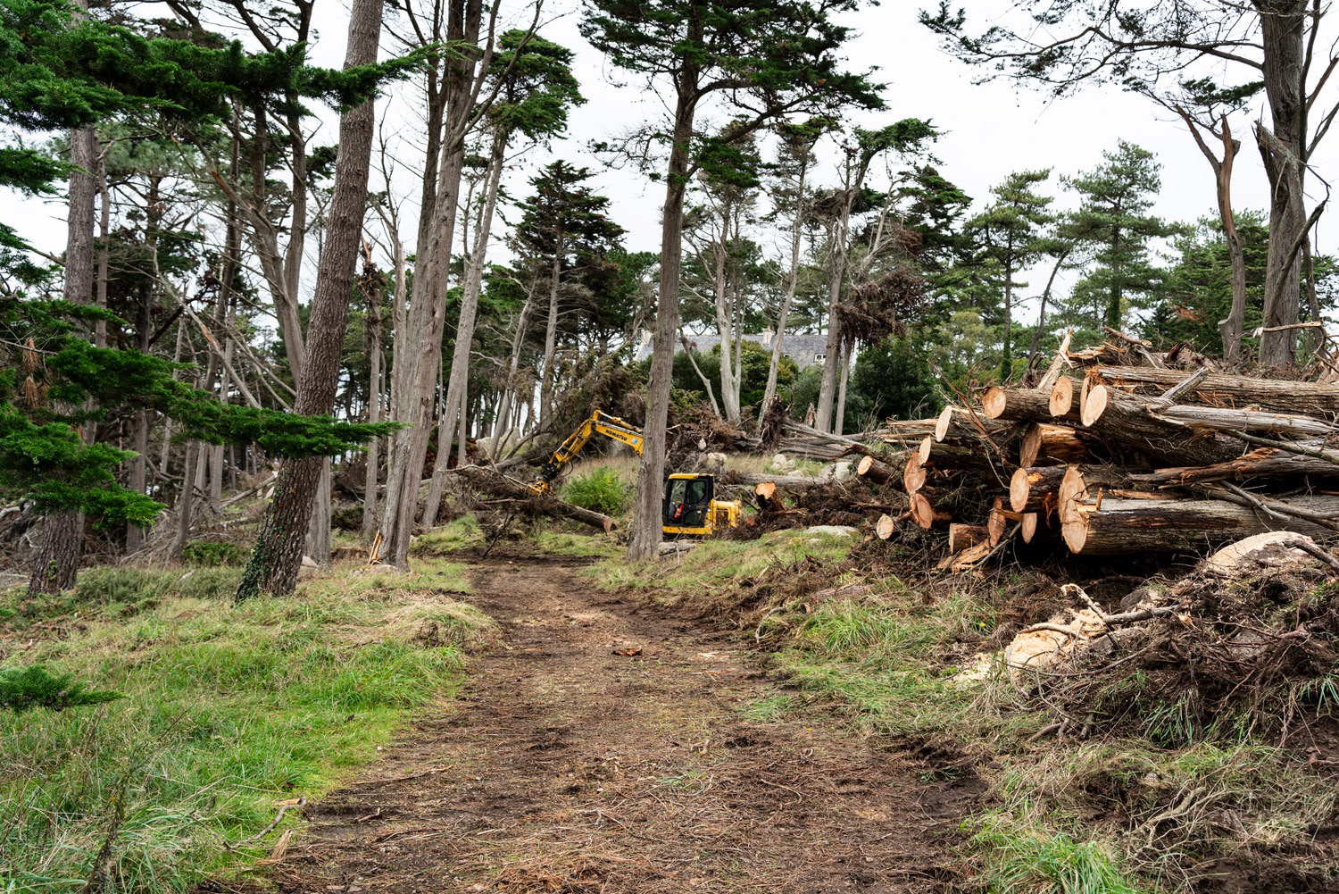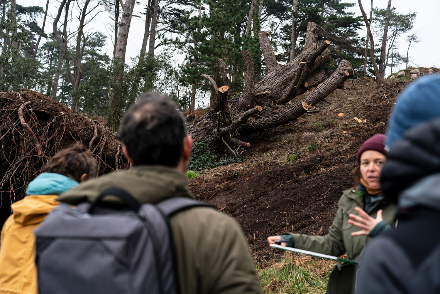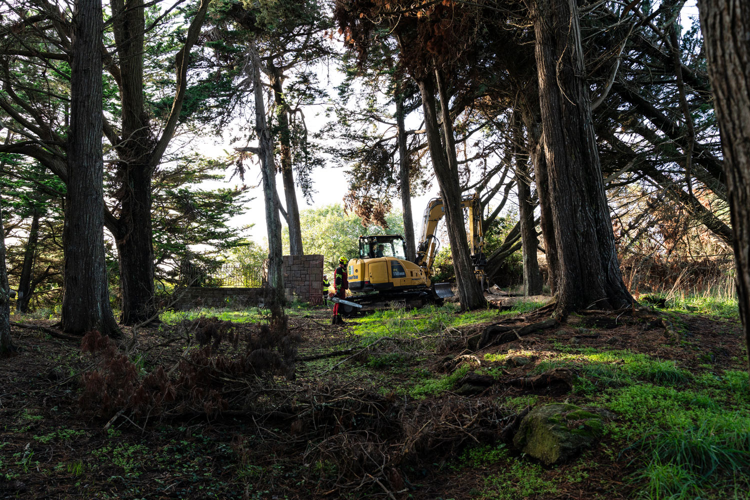 Chantier de nettoyage, de restauration et d'aménagement de la Pointe du Dourven, après le passage de la tempête Ciaran
