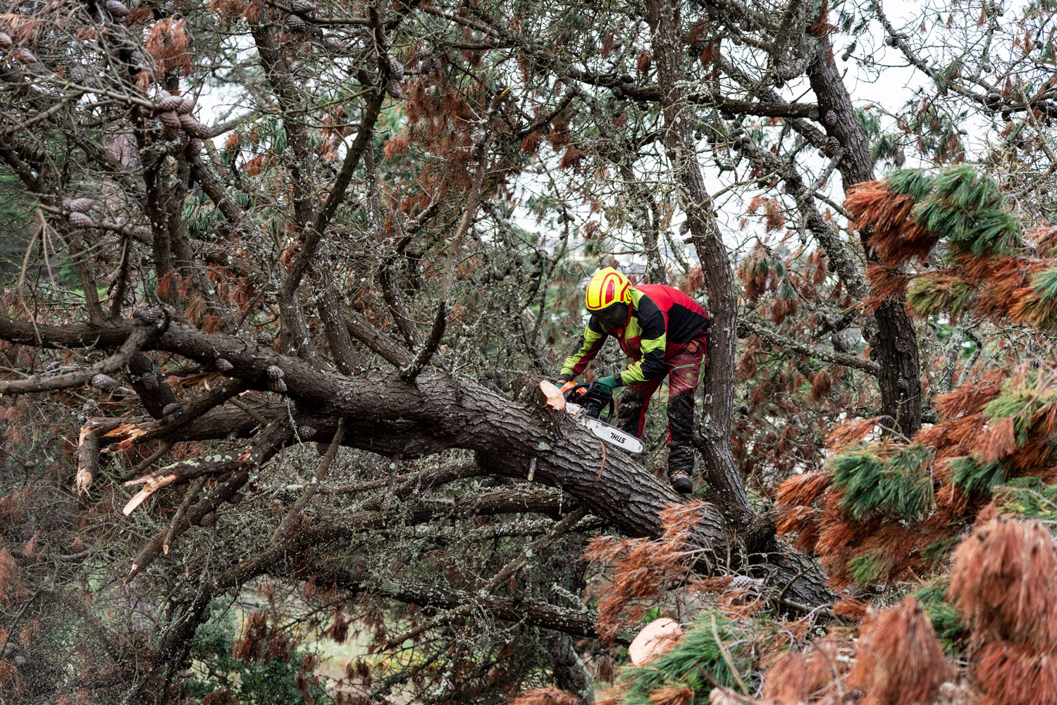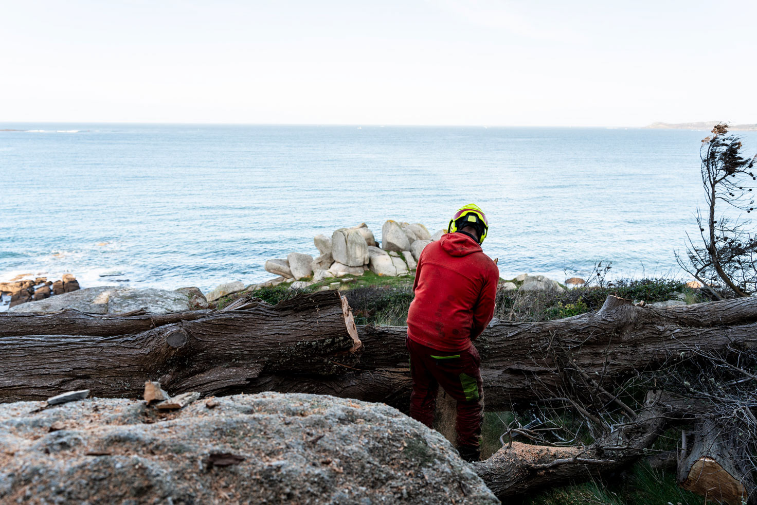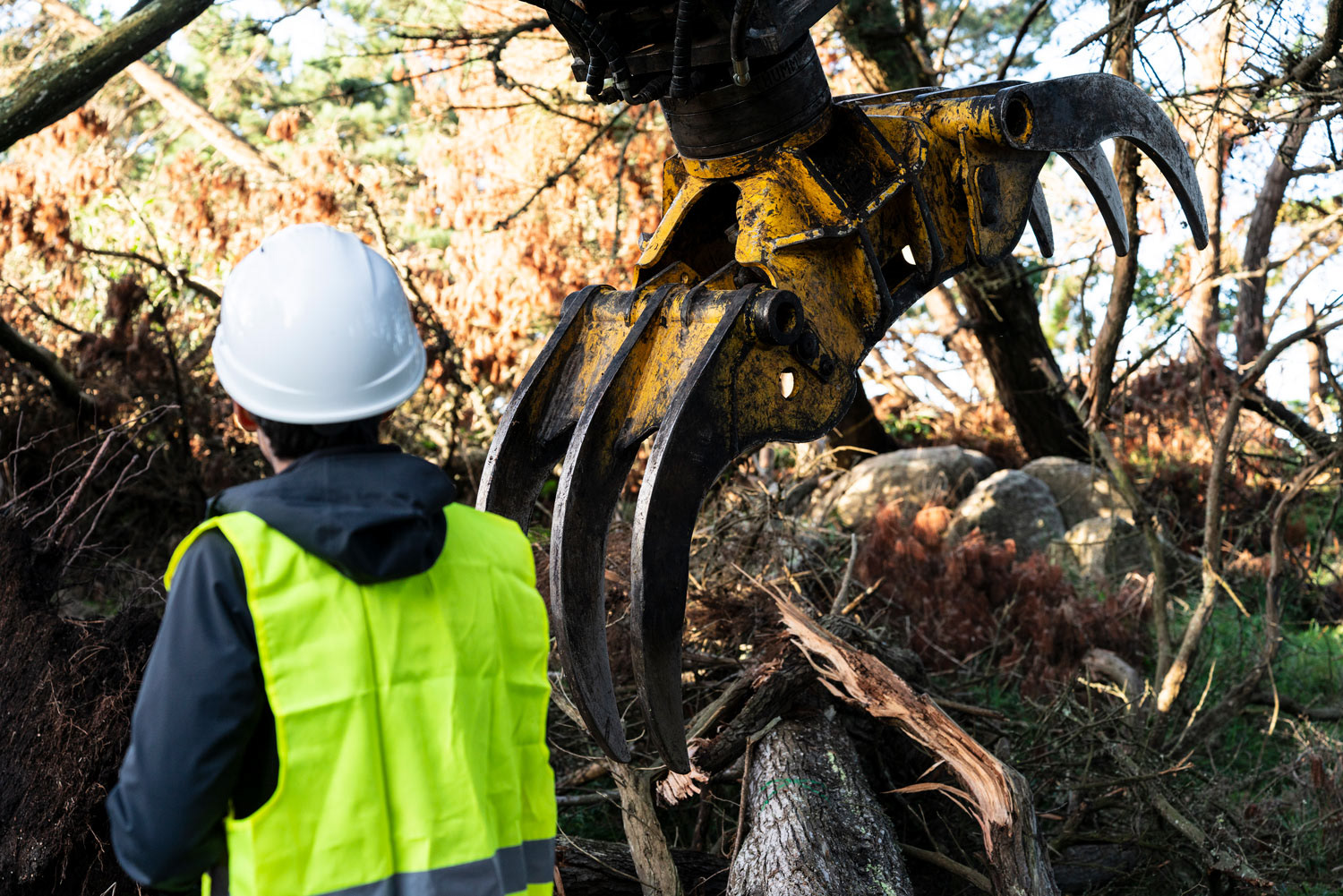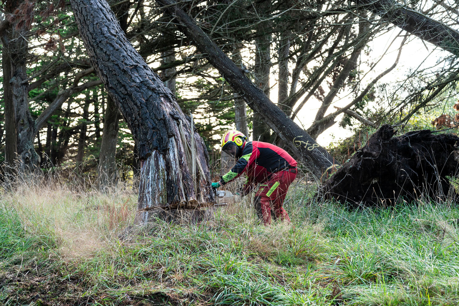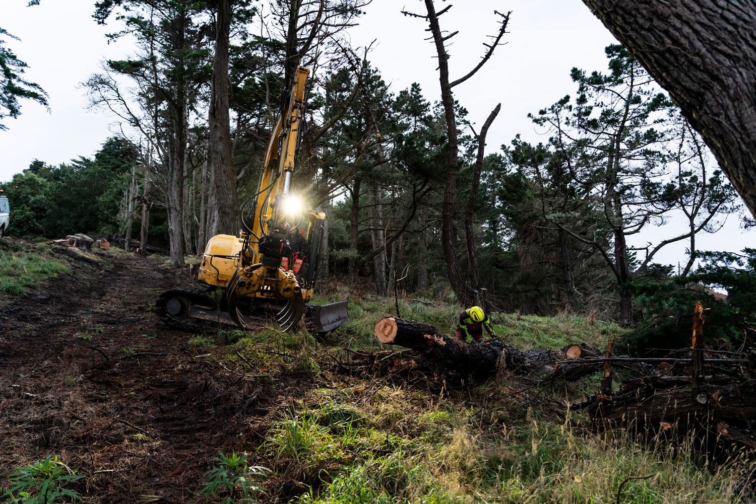 Chantier de nettoyage, de restauration et d'aménagement de la Pointe du Dourven, après le passage de la tempête Ciaran