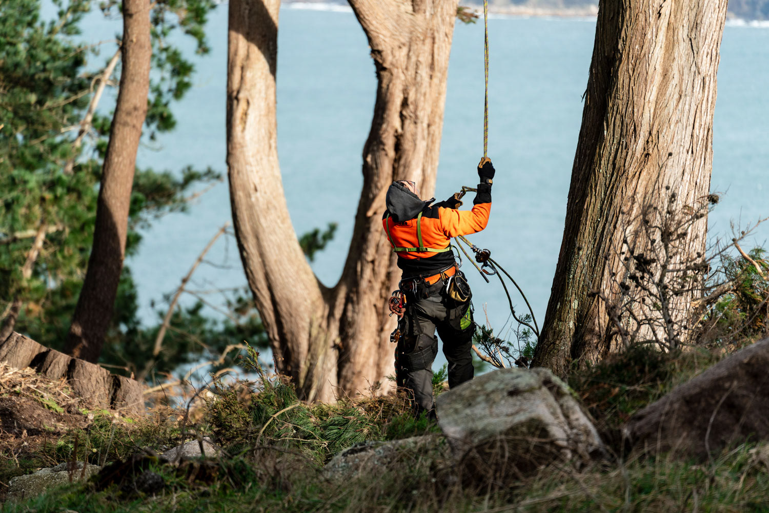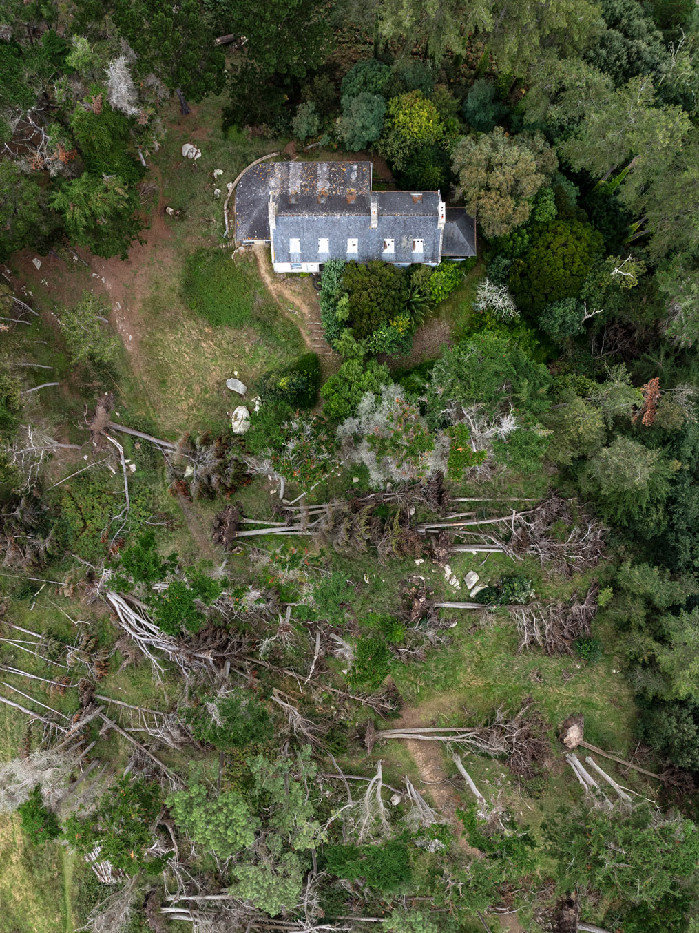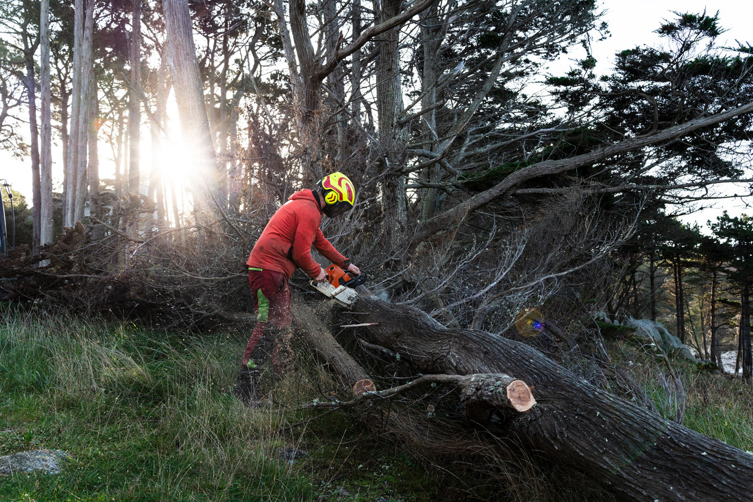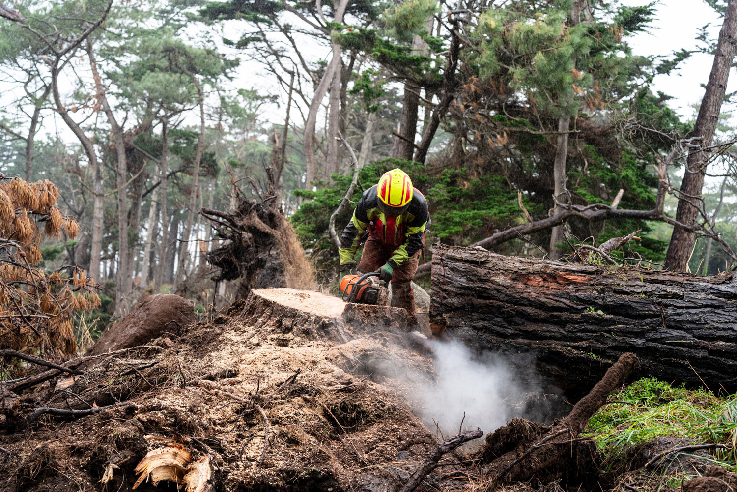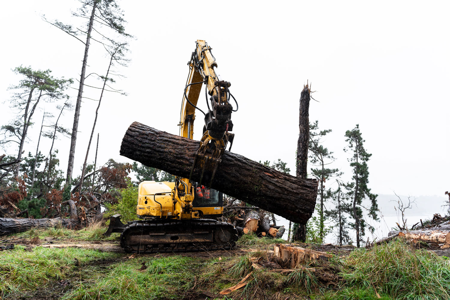 Chantier de nettoyage, de restauration et d'aménagement de la Pointe du Dourven, après le passage de la tempête Ciaran