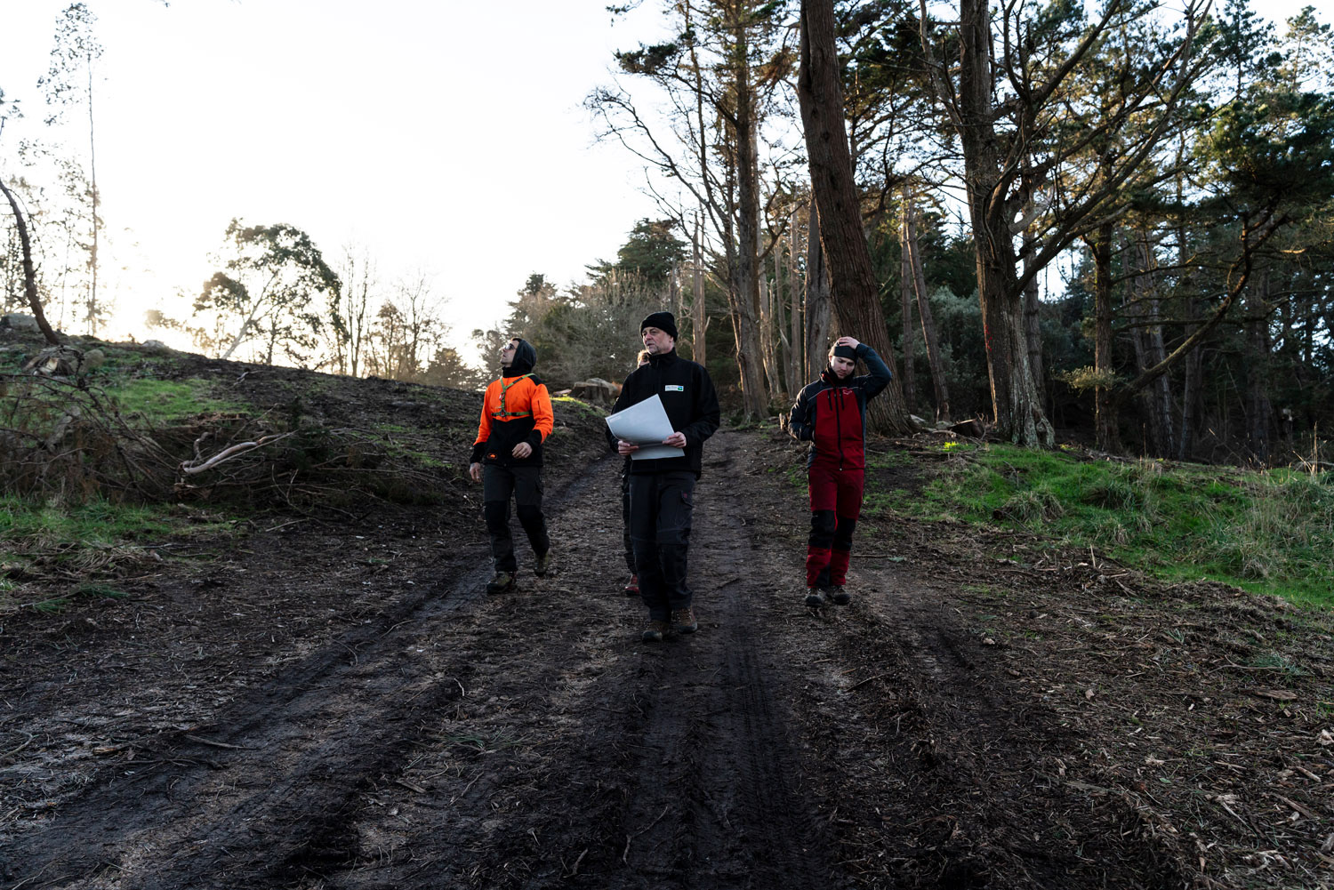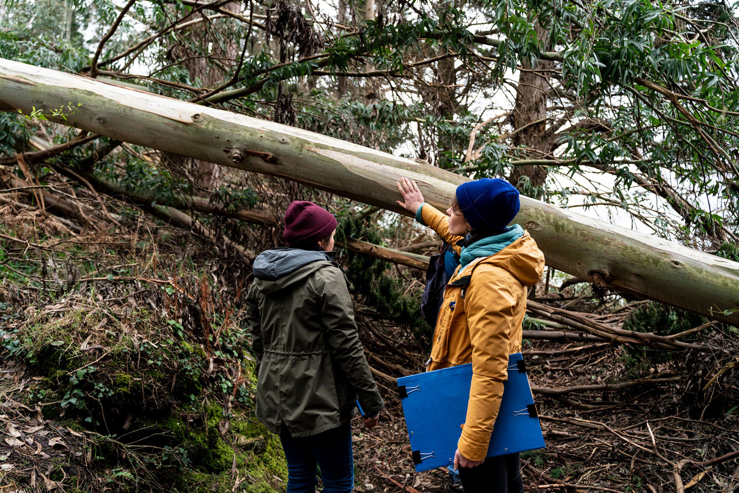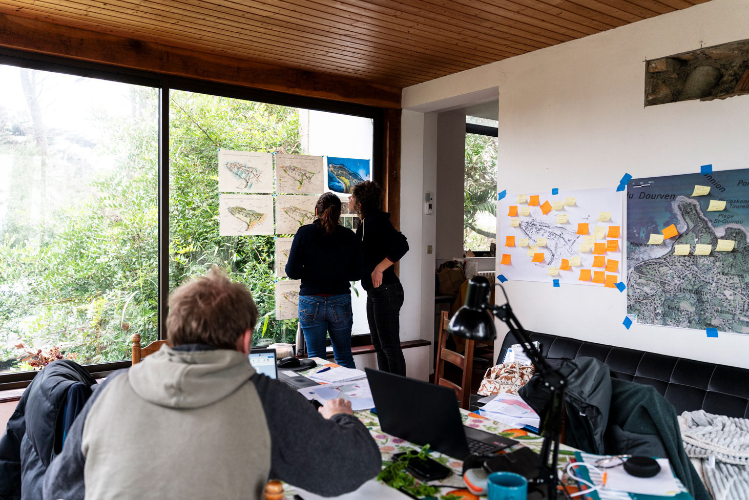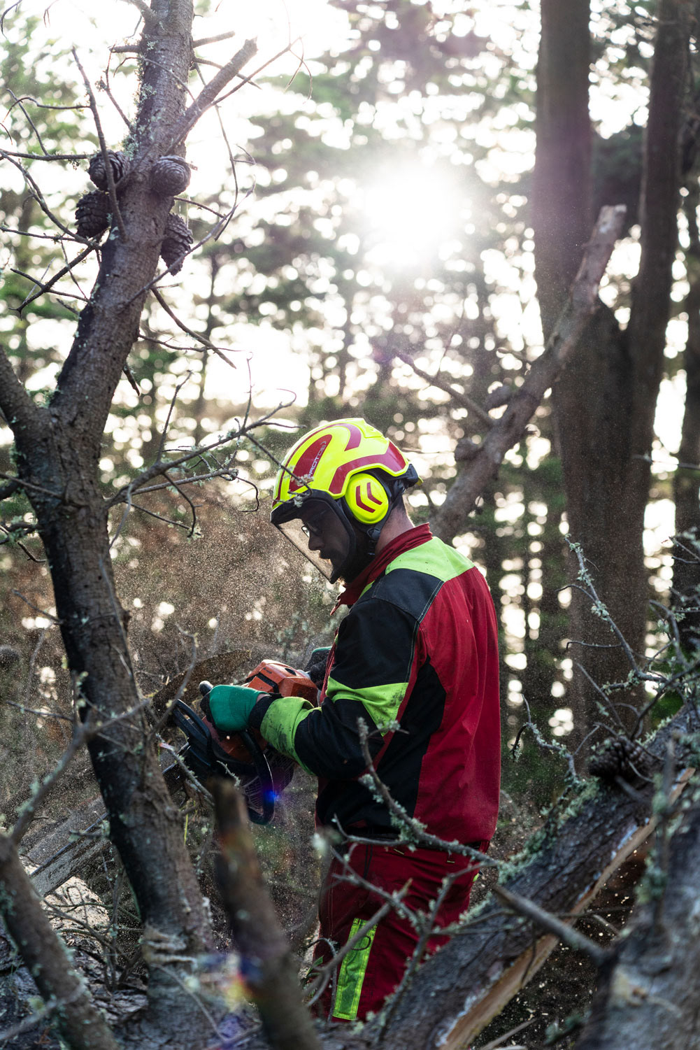 Chantier de nettoyage, de restauration et d'aménagement de la Pointe du Dourven, après le passage de la tempête Ciaran