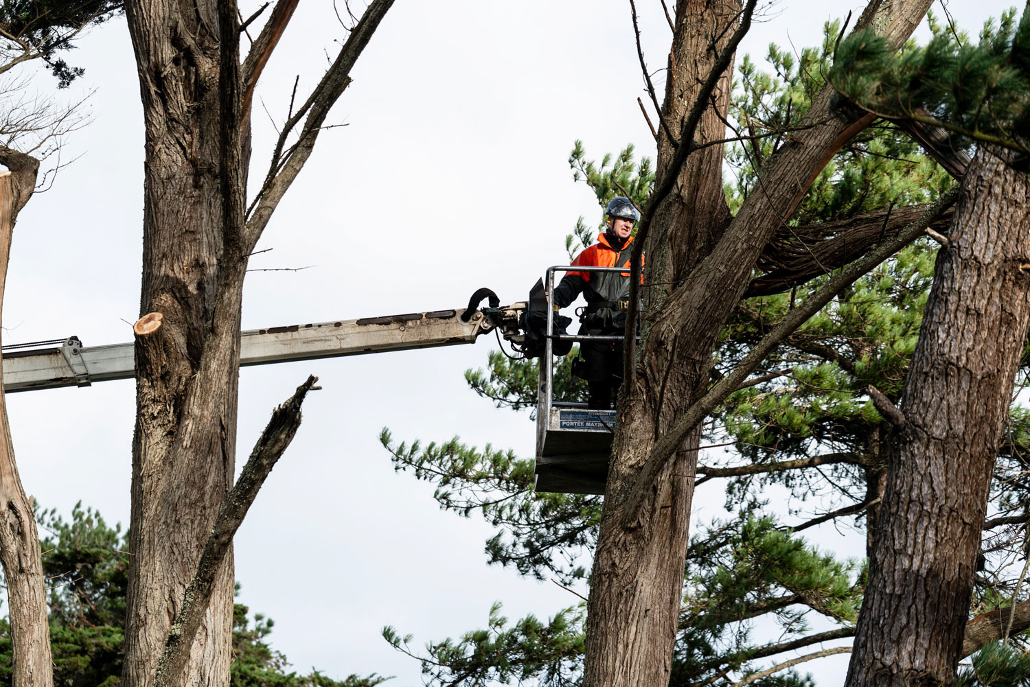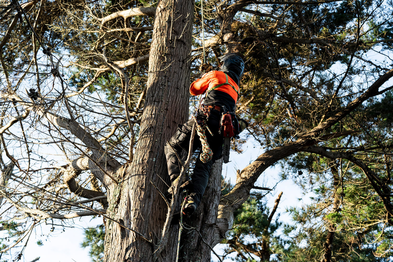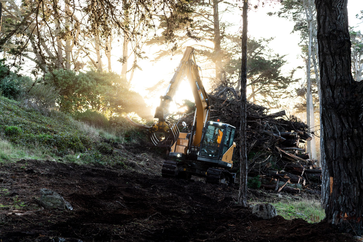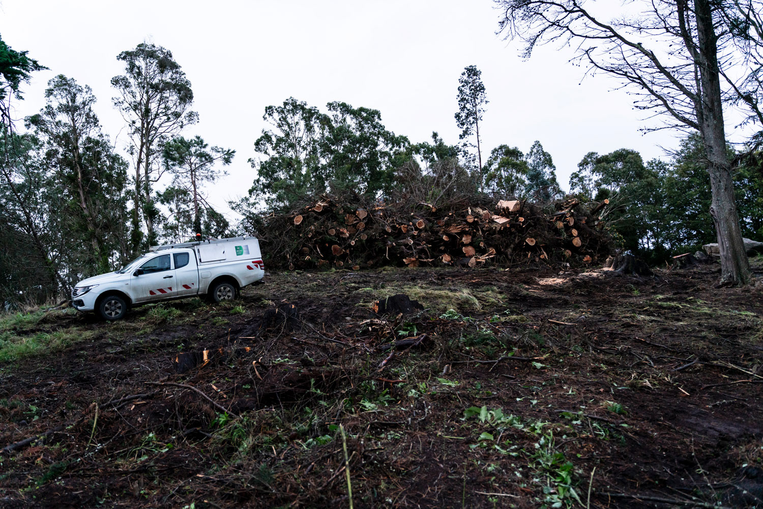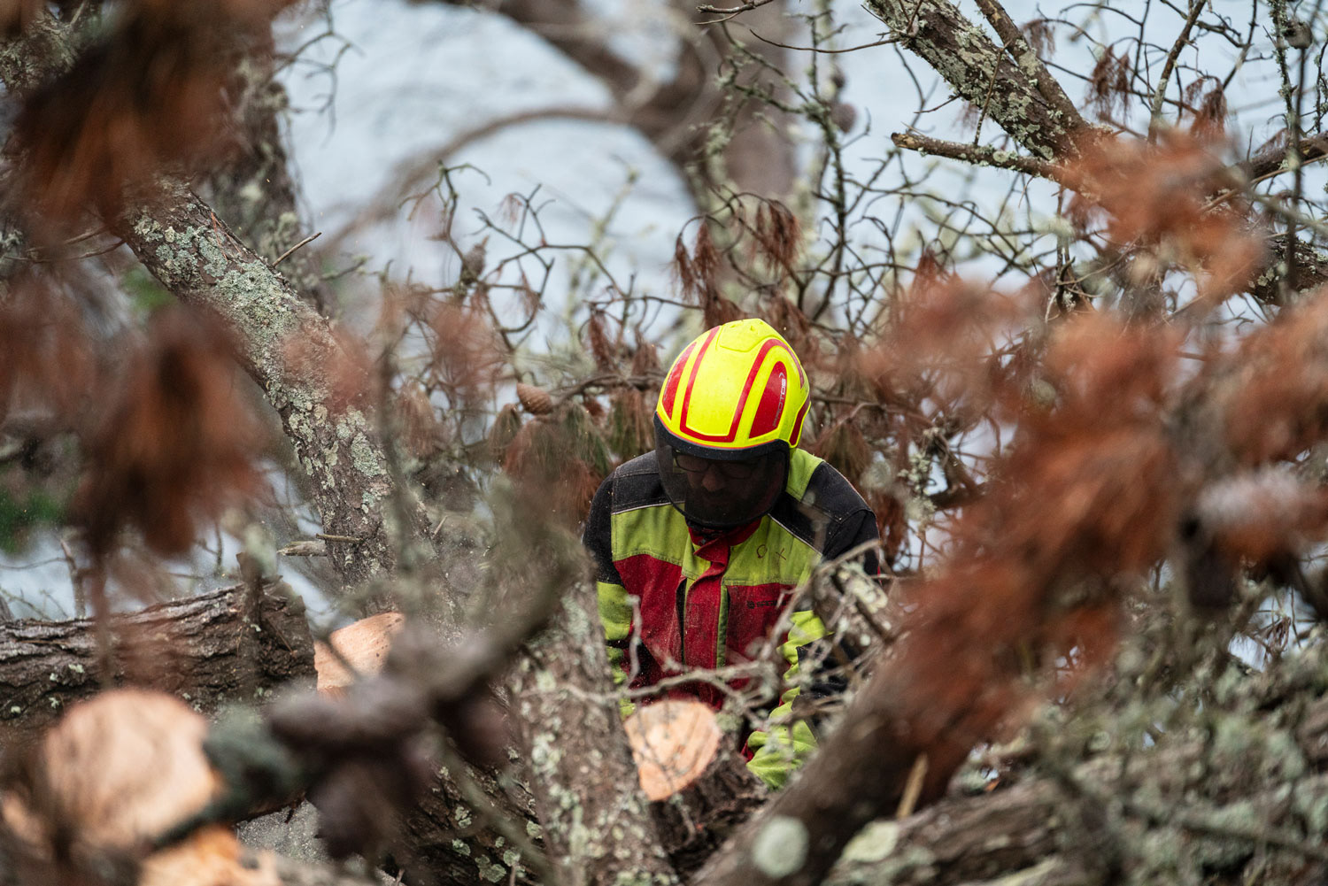 Chantier de nettoyage, de restauration et d'aménagement de la Pointe du Dourven, après le passage de la tempête Ciaran