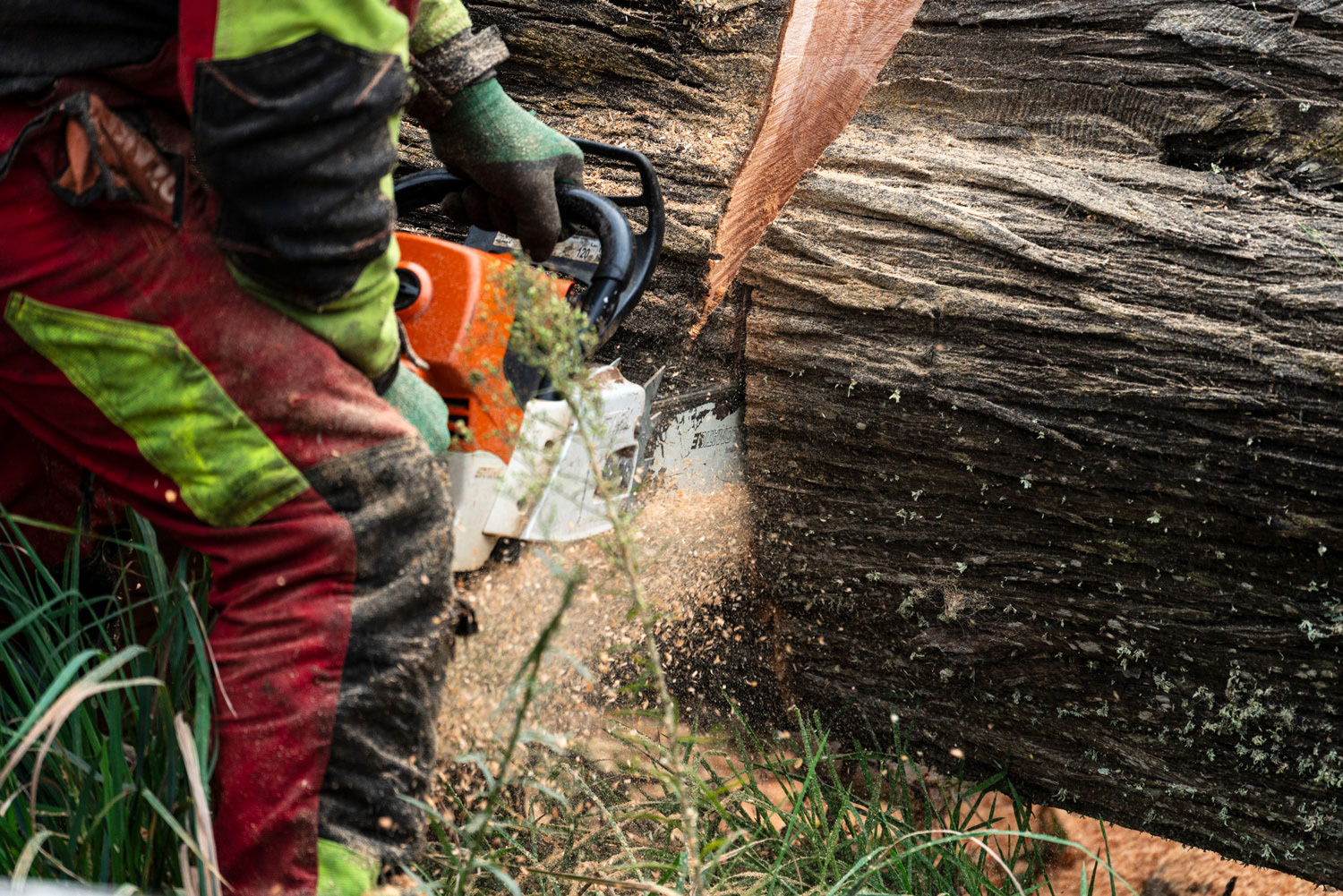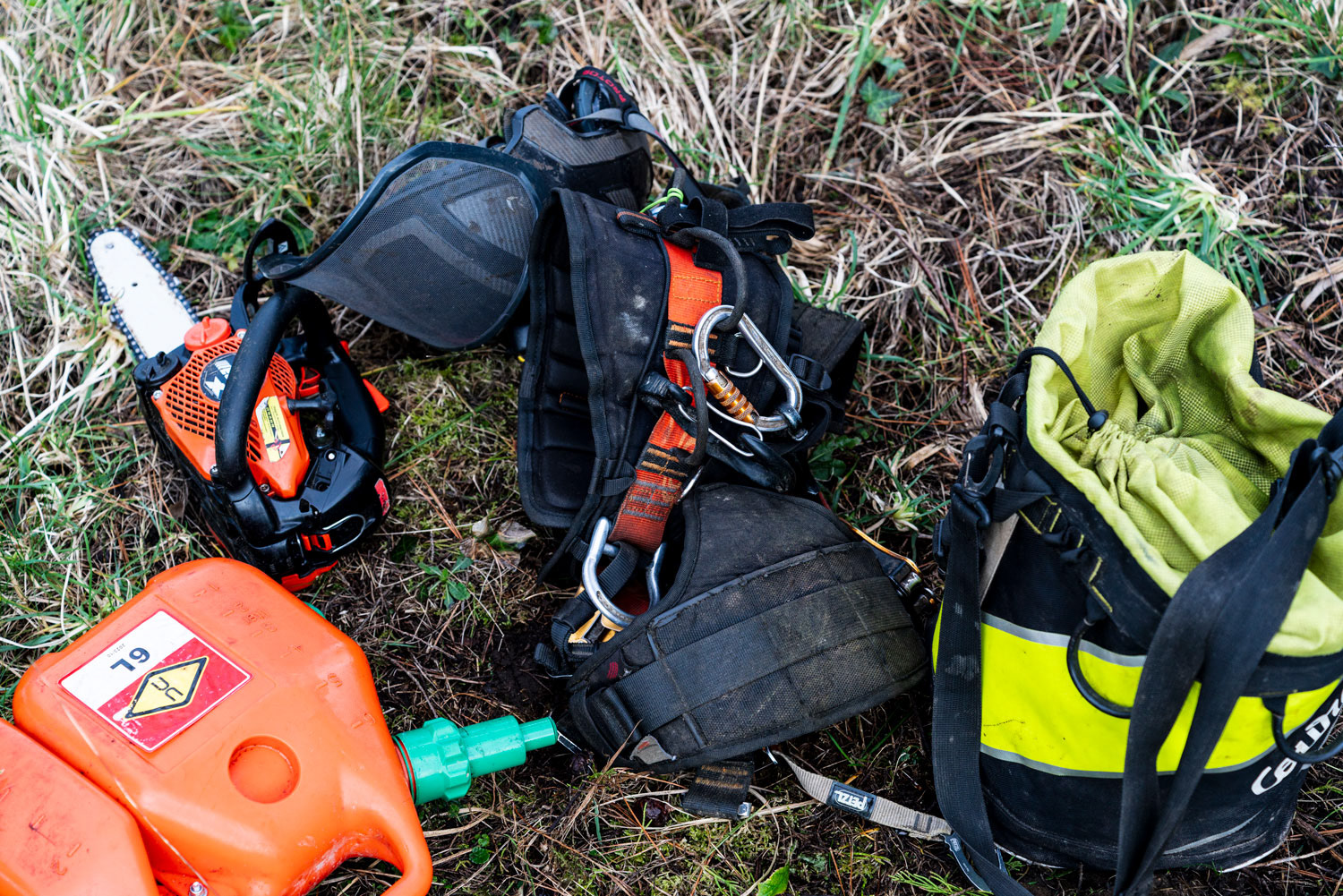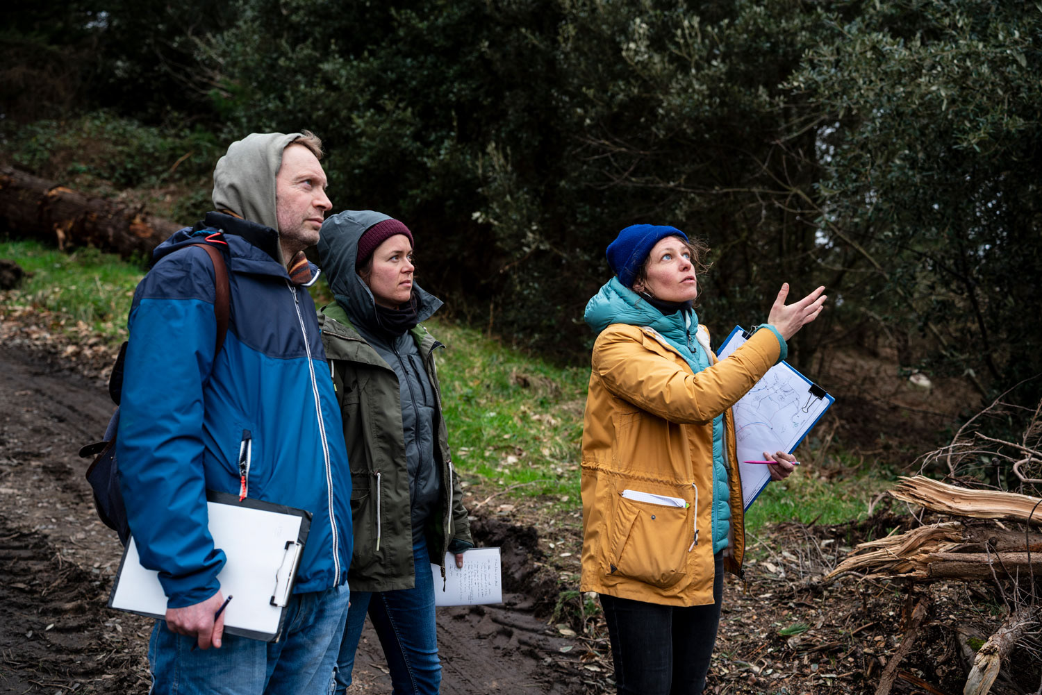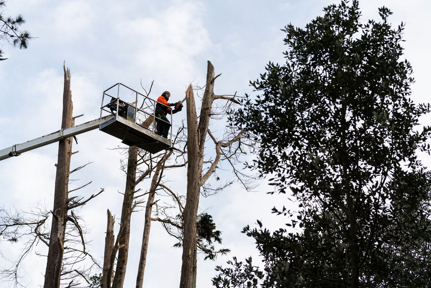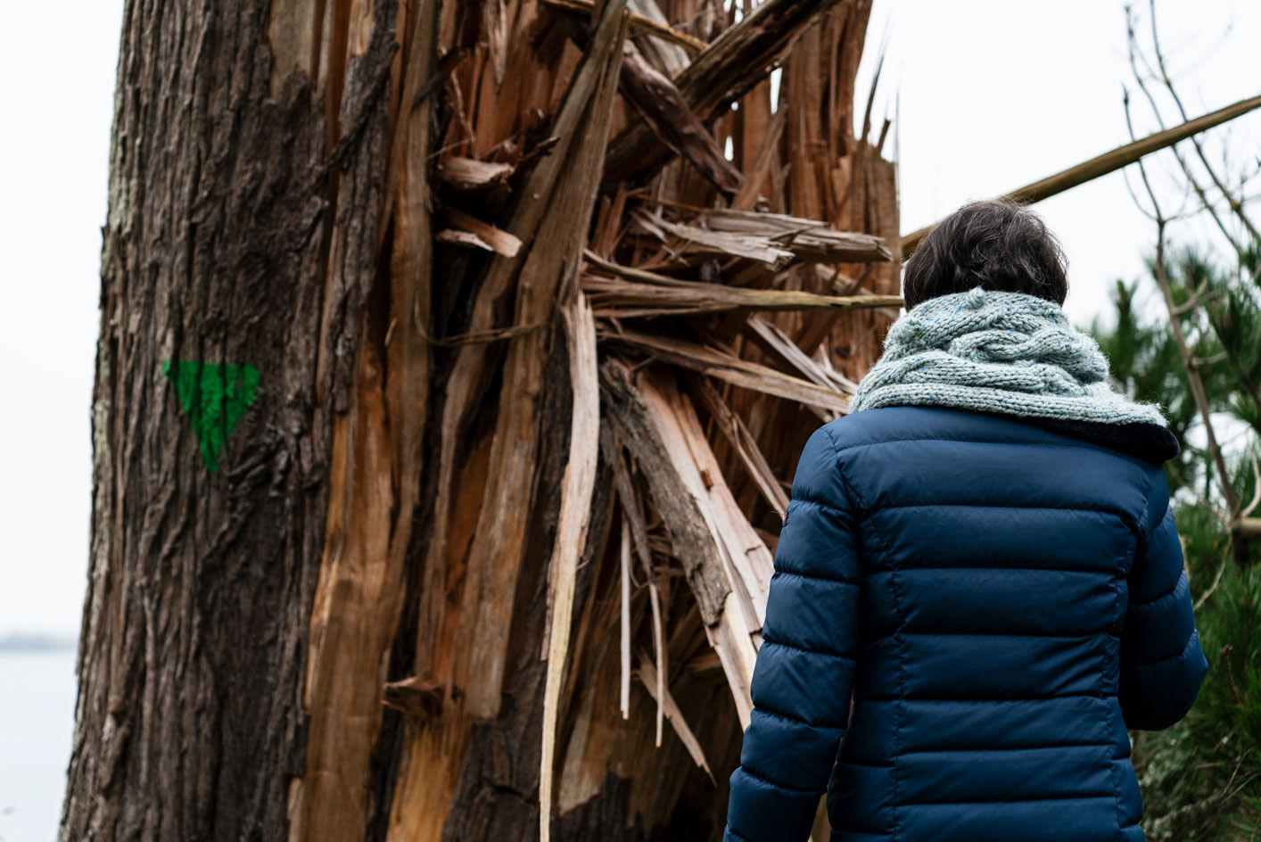 Chantier de nettoyage, de restauration et d'aménagement de la Pointe du Dourven, après le passage de la tempête Ciaran